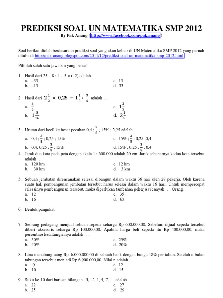 Contoh Soal Un Smp Soal Un Matematika Sd Pdf Soal Ipa Smp ...