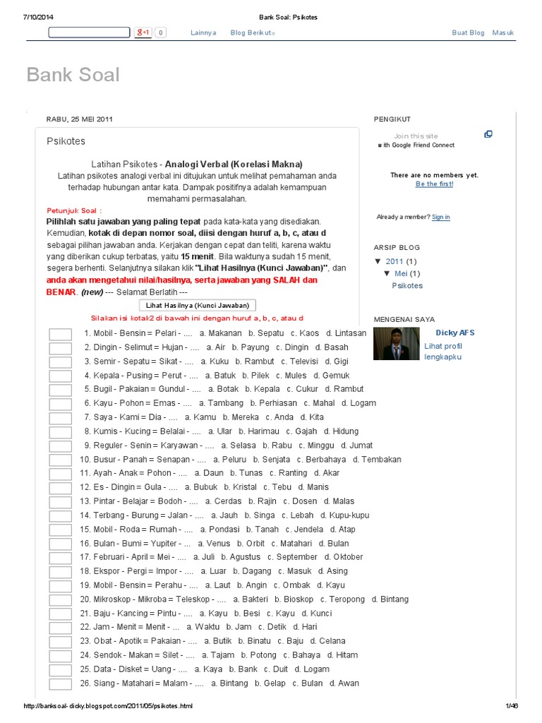 Psikotes Kerja Bank : Contoh Soal Psikotes Kerja Di Bank ...